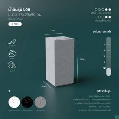 - ขนาดน้ำล้น : กว้าง 23×23 ซม. สูง 50 ซม.